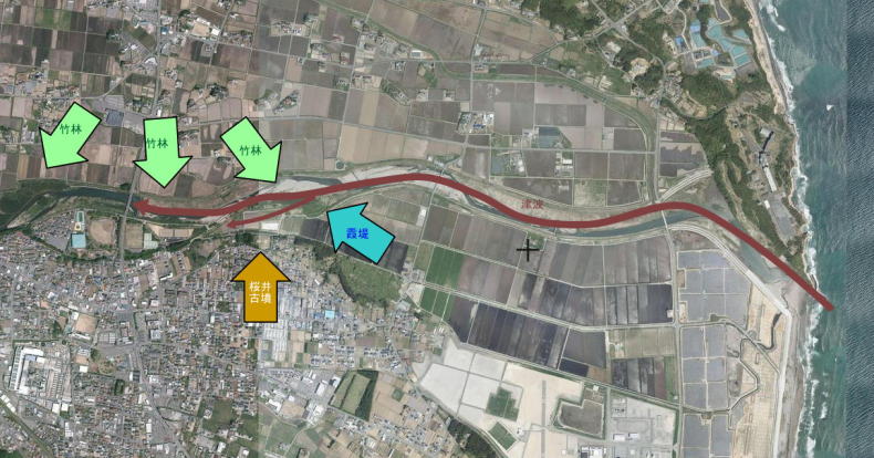 311の被害では、この桜井古墳公園のすぐ側まで、津波が来たそうです。